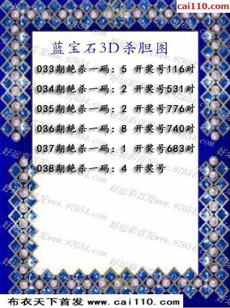 2020年038期福彩3D蓝宝石杀码图谜(原