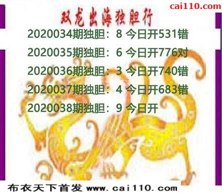 2020年038期福彩3D蓝宝石杀码图谜(原