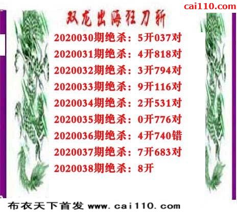 2020年038期福彩3D蓝宝石杀码图谜(原