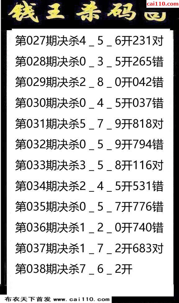 钱王杀号3D20038期布衣天下首发