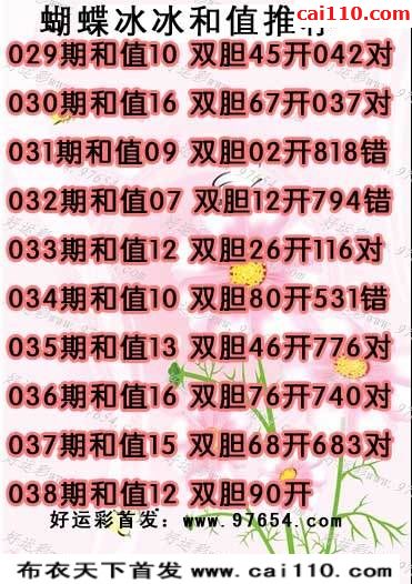 蝴蝶冰冰20年038期3d和值+双胆图(原创