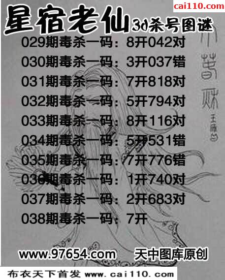 星宿老仙20年038期福彩3D杀号图(原创