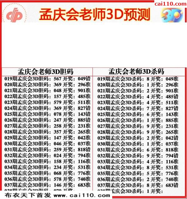 福彩2020年038期孟庆会今期3d图迷
