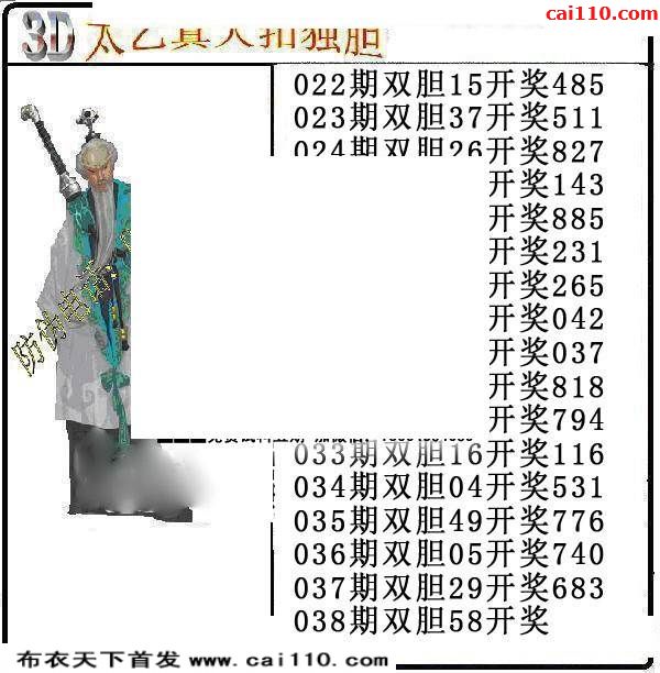 老子毒胆3d20年038期福彩双胆图谜