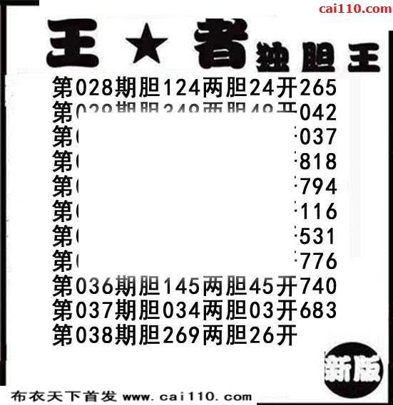 王者独胆20年038期推荐福彩3d图谜
