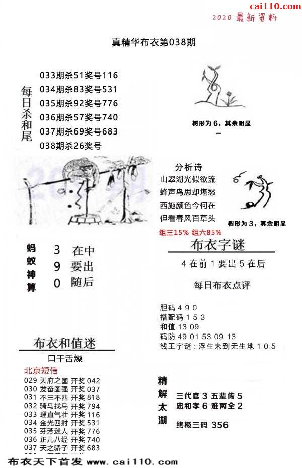 真精布衣2020年038期3d正版布衣12345