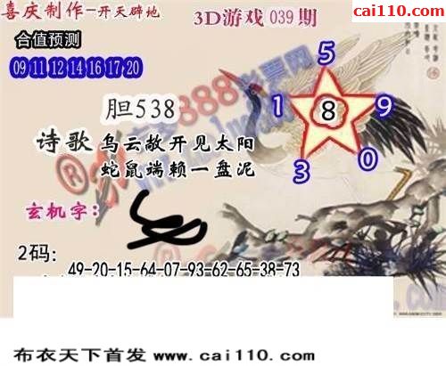 福彩3d20年039期正版杀码图3d图迷