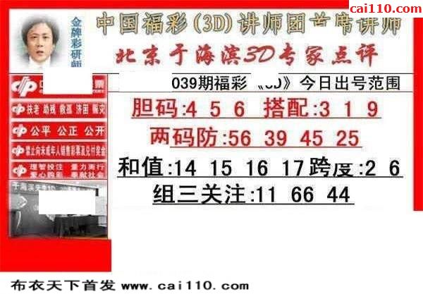 2020年039期福彩3d早版布衣最新三d图