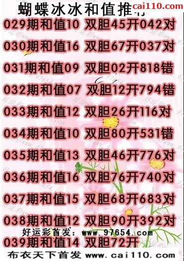 蝴蝶冰冰20年039期3d和值+双胆图(原创