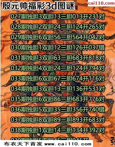 3D殷元帅20年039期布衣天下胆码图(原