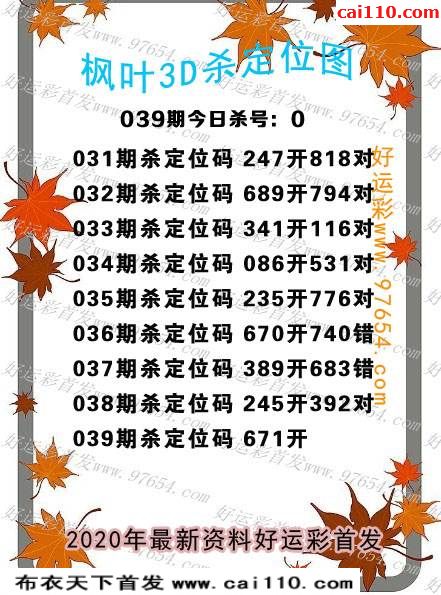福彩3d2020年039期枫叶杀定位号码(原创)