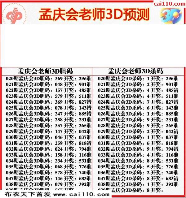 福彩2020年039期孟庆会今期3d图迷