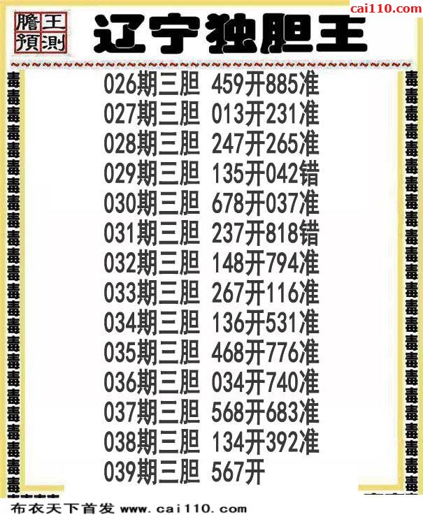 辽宁三胆20年039期福彩毒胆王图谜