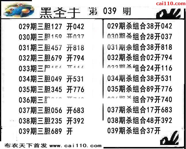 3D黑圣手2020年039期福彩专家送胆