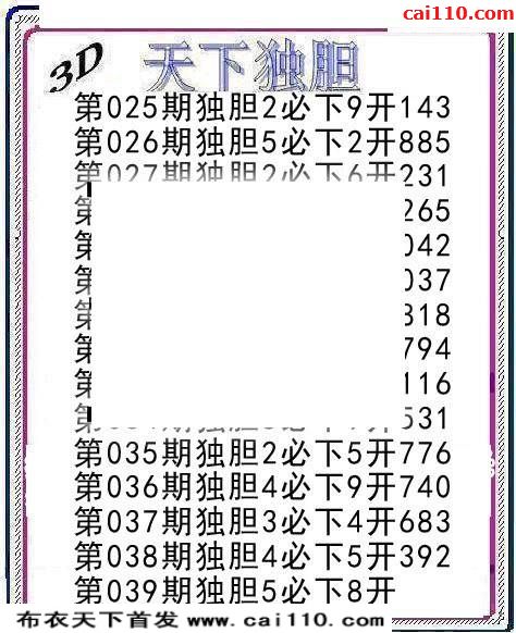 天下独胆3d2020年039期热门必下图谜