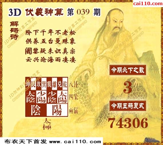伏羲神算3d20年039期今日三D迷语彩图