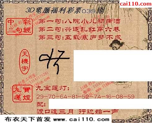 天齐杀码20039期福彩3d原创总汇 杀:8