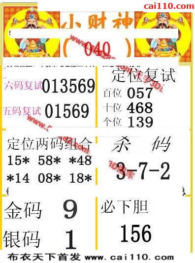 2020年040期福彩3d早版布衣最新三d图