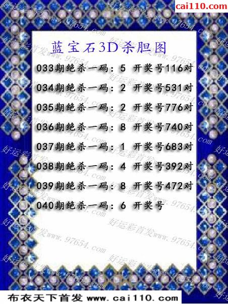 2020年040期福彩3D蓝宝石杀码图谜(原