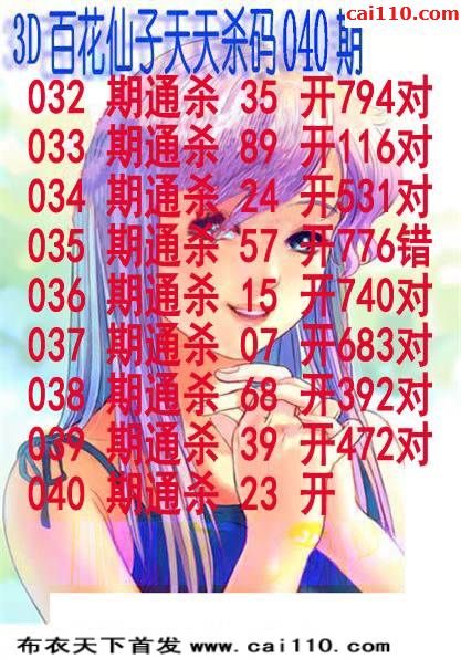 百花仙子20年040期福彩3D杀号图迷