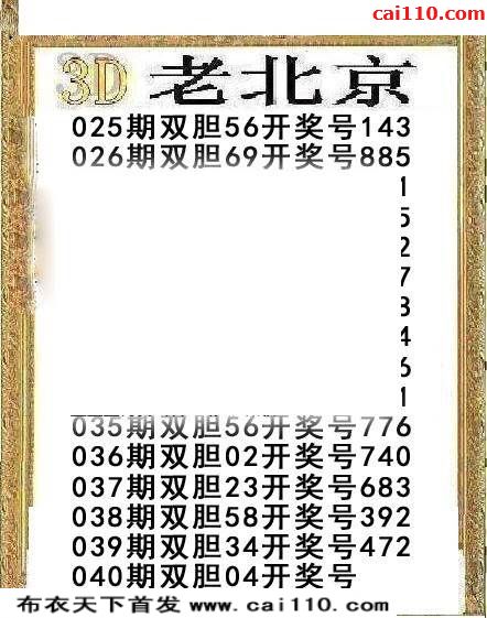 3D老北京20年040期福彩双胆图