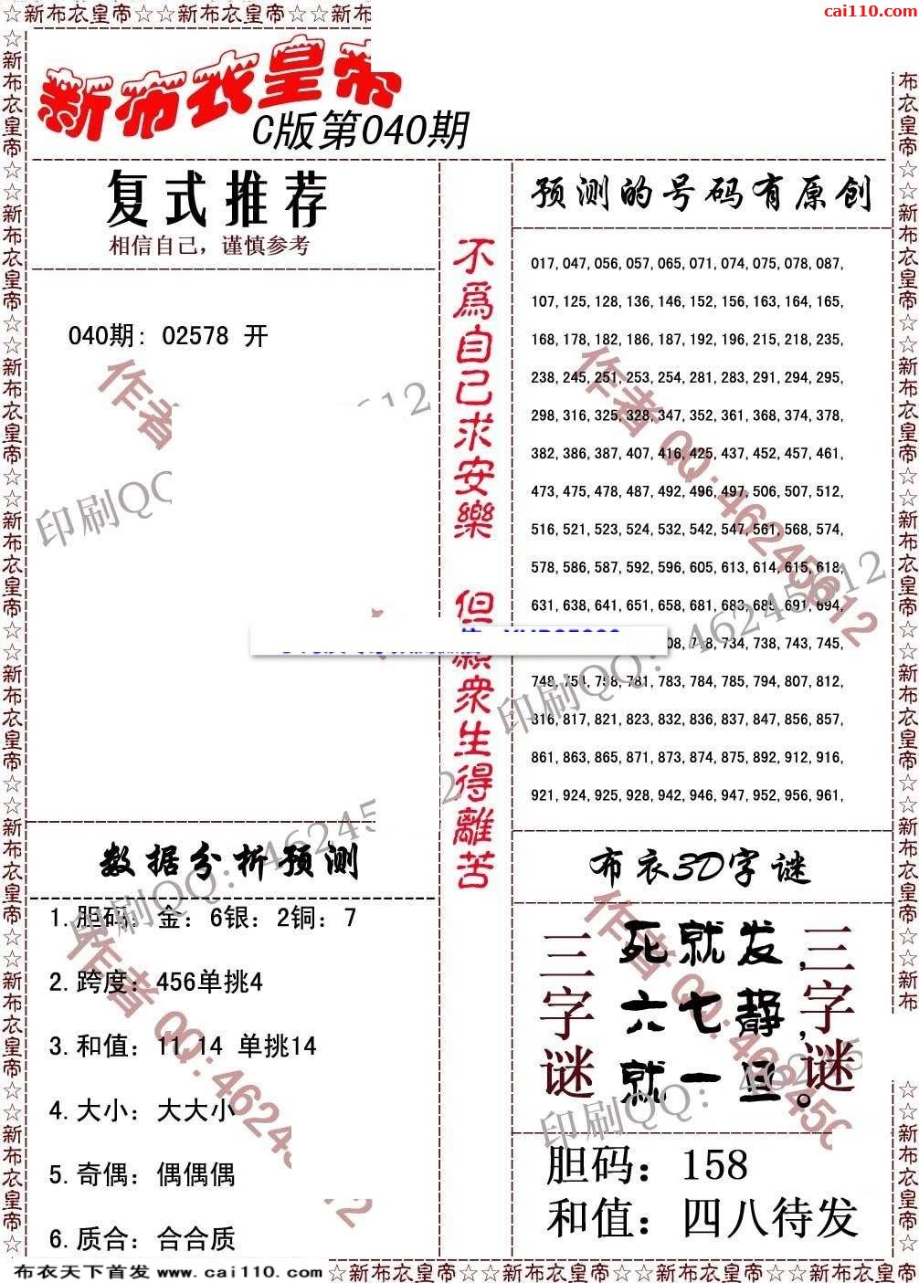 精准布衣20040期福彩皇帝今期3d彩报图