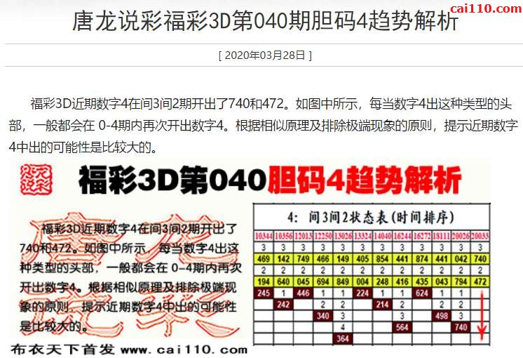 20年040期福彩3D唐龙说彩近期趋势解析