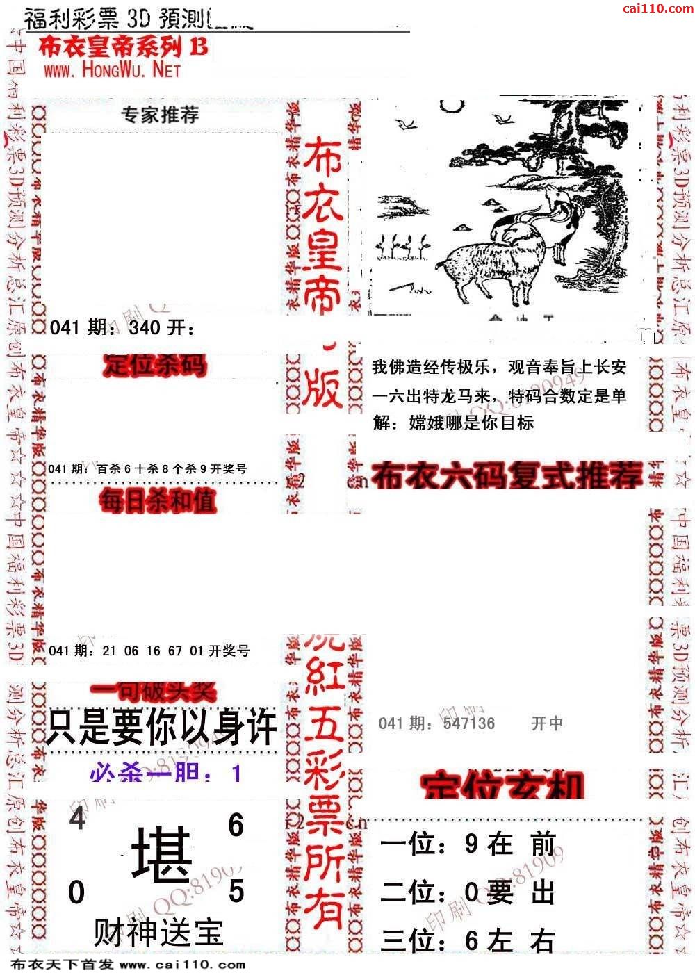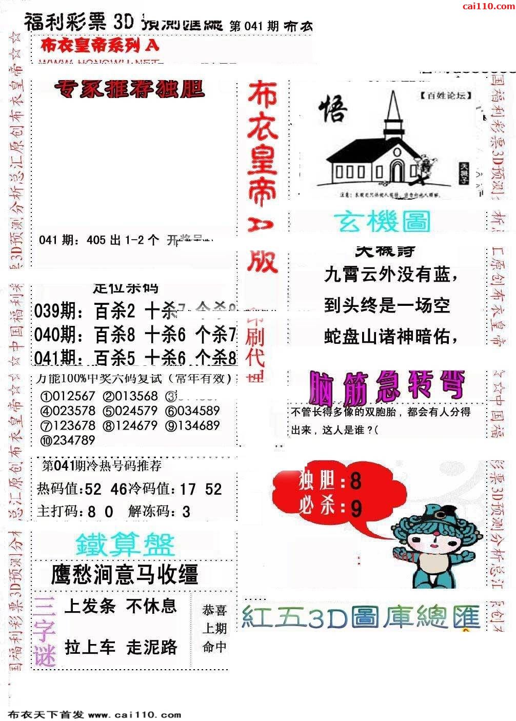 福彩3D2020年041期布衣皇帝最新三d图迷