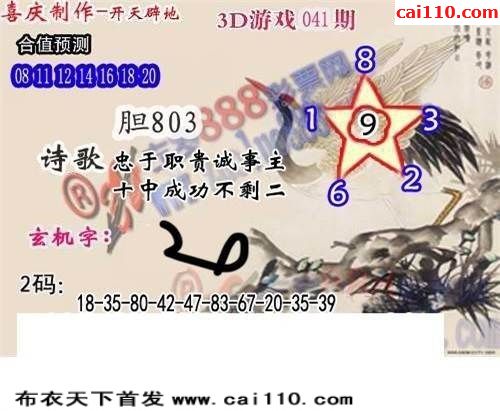 福彩3d20年041期正版杀码图3d图迷