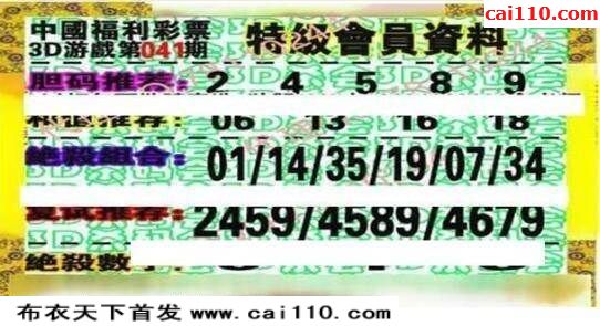 福彩3d20年041期正版杀码图3d图迷