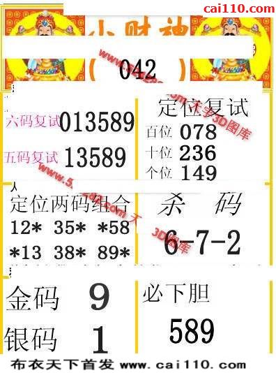 2020年042期福彩3d早版布衣最新三d图
