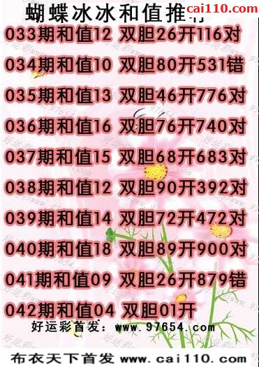 蝴蝶冰冰20年042期3d和值+双胆图(原创