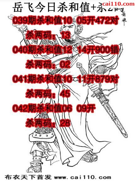岳飞杀和20年042期+3D绝杀两码(原创)