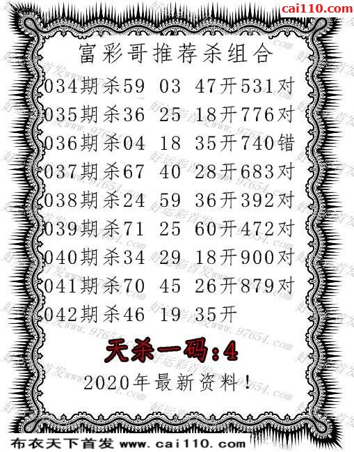 岳飞杀和20年042期+3D绝杀两码(原创)