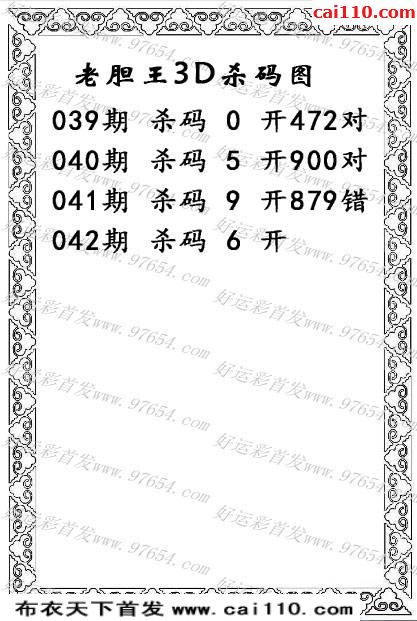 送财童子3d2020年042期福彩杀码图(原