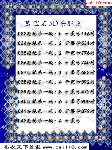 2020年042期福彩3D蓝宝石杀码图谜(原