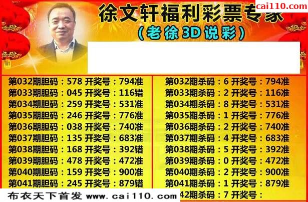 福彩2020年042期徐文轩今期3d图迷