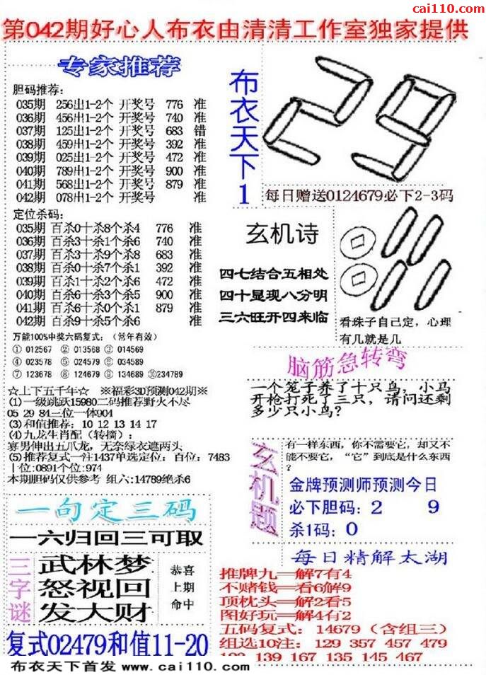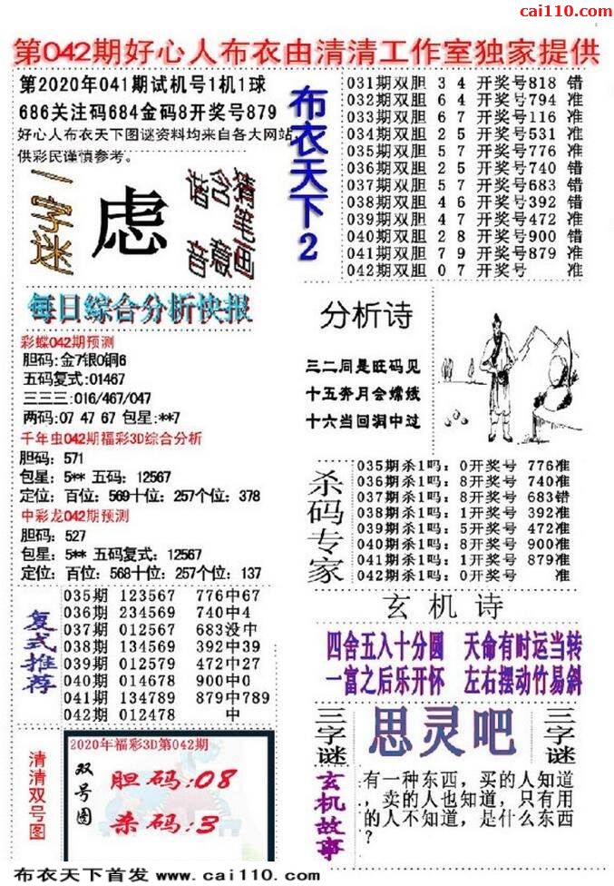 20年042期福彩3d本站原创布衣六版