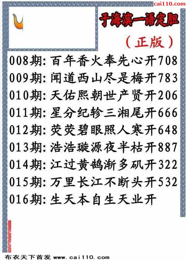 3d彩票今日字谜23016期于海滨一语定胆