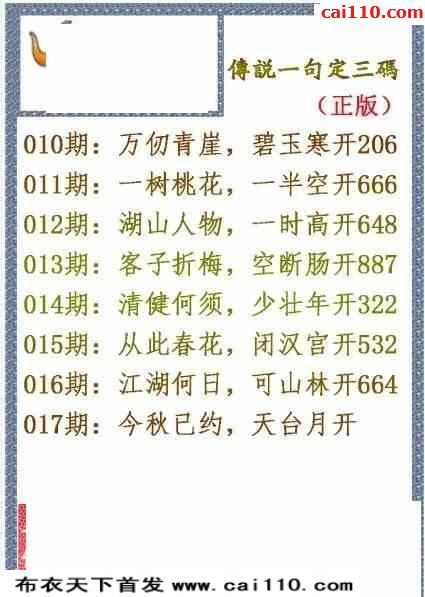 福彩3d23年017期字谜传说一句定三码