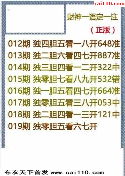 福彩3D019期布衣天下四字金胆歇后语