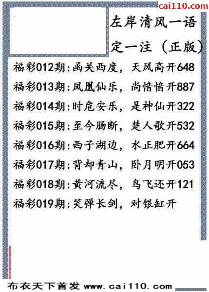 福彩3d左岸清风23年019期一语定一注
