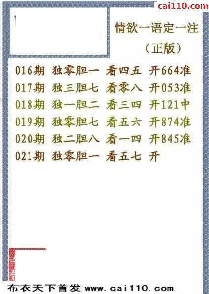 福彩3d23年021期字谜传说一句定三码