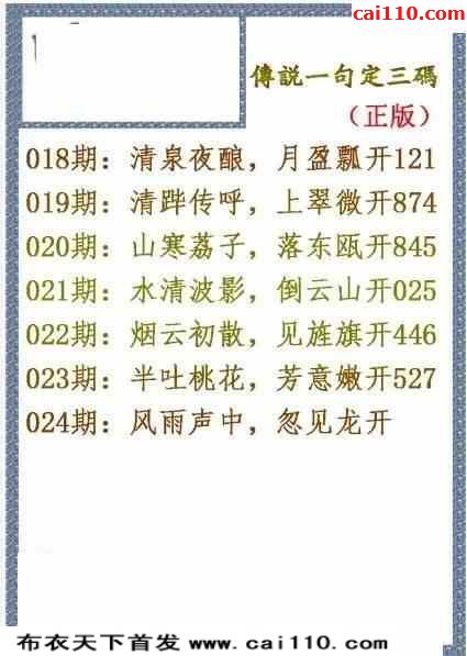 福彩3d23年024期字谜传说一句定三码