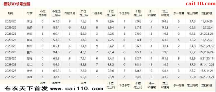 23年026期福彩3d彩飞票舞杀尾字谜