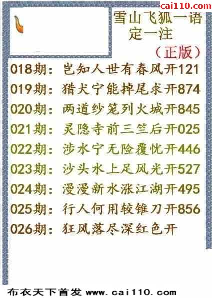 彩票3d字谜026期雪山飞狐一语定一注