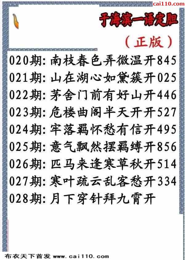 3d彩票今日字谜23028期于海滨一语定胆