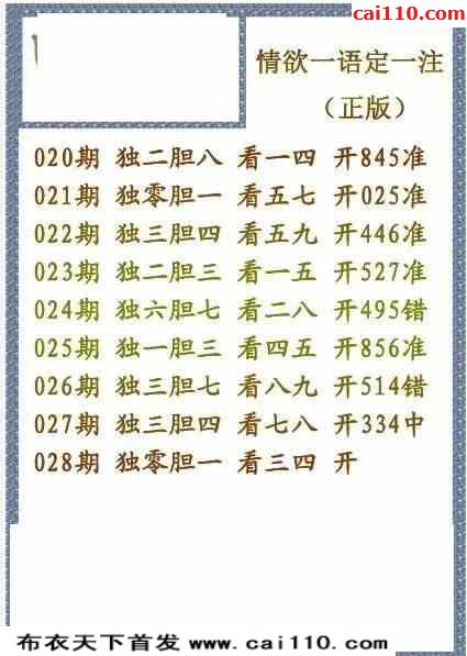 彩票3d字谜028期雪山飞狐一语定一注