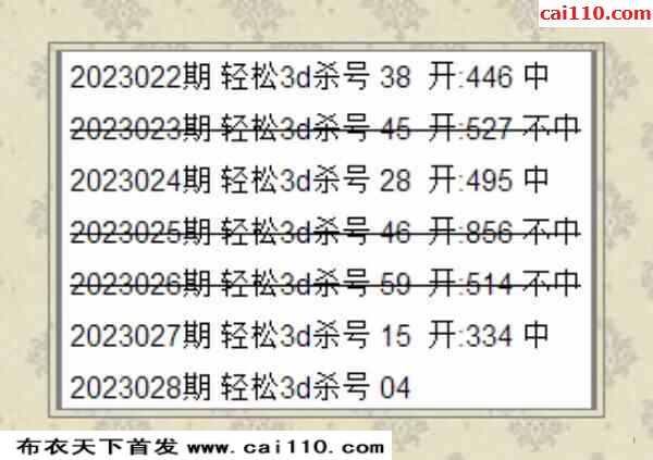 彩浪每期杀码推荐028期
