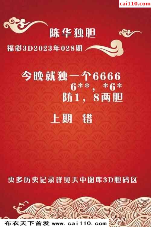 福彩3D2023年028期陈华独一胆